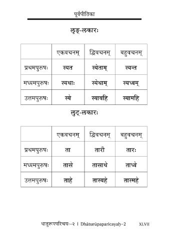 धातुरूपपिरचयः–२ । Dhāturūpaparicayaḥ–2 XLVII